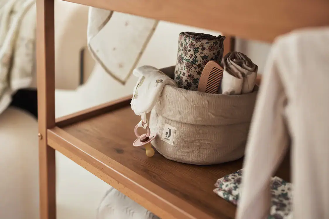Ruim alle troepjes van de commode gemakkelijk op met deze handige mandjes. Berg er bijvoorbeeld verzorgingsproducten, luiertjes of haarspulletjes in op en je commode is in een handomdraai weer netjes. Het Soft Waves mandje heeft een leuk crinkle golfjes patroon aan de buitenkant en is van afneembaar polyester aan de binnenkant, wel zo hygiënisch! Ga jij voor Nougat of Olive Green? Houd jij van matchy items in je babykamer? Kijk dan ook eens naar de grote opbergmand, het dekentje en de aankleedkussenhoes. Gemaakt van OEKO-TEX gecertificeerd katoen.