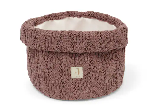 Leuk gebreid mandje van Jollein. Het mandje, uit het Spring Knit thema, is gemaakt van katoen en acryl en de afneembare binnenkant is gemaakt van PU. Het gebreide opbergmandje is verkrijgbaar in de kleuren chestnut (bruin) ivory (gebroken wit en rosewood (roze) en heeft een afmeting in de doorsnede van 18 cm.