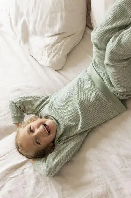 Feetje Pyjama wafel – Groen Melange Collectie: Basiscollectie