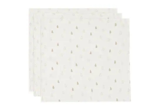 Deze leuke hydrofiele doeken hebben een schattig all-over Nijntje printje. De ondergrond is Ivory en Nijntje heeft de kleuren Olive Green en Nougat. De leuke hydrofiele doeken zijn heerlijk zacht en uitermate geschikt voor gevoelige babyhuidjes. De hydrofiele doeken shop je in small (3-pack) en large (2-pack). Zo heb je altijd een schone doek binnen handbereik!
