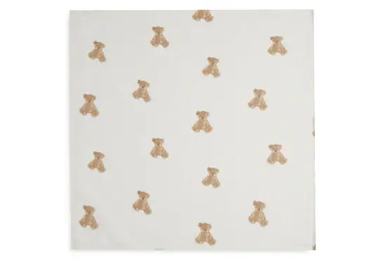 Deze leuke hydrofiele doeken hebben een schattige all-over Teddy Bear printje. De ondergrond is Ivory en de beertjes hebben de kleuren Biscuit en Chestnut.