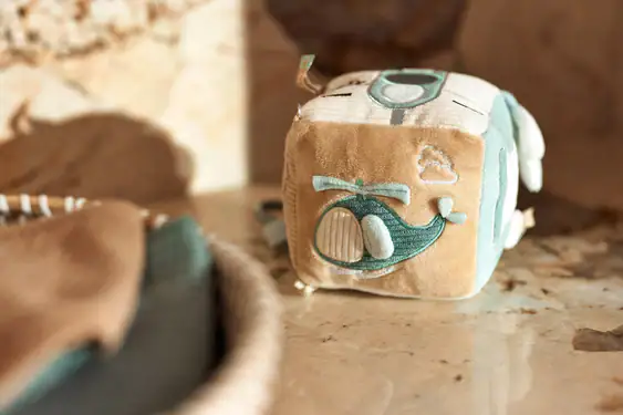 Deze avontuurlijke activiteitenkubus in het “On The Go”-thema is perfect voor nieuwsgierige kleintjes! In de frisse kleuren Sea Green en Biscuit biedt deze kubus een wereld vol ontdekkingen. Je vindt er een schattige sleutel met een knispergeluid, een tankpaal opdruk en een verkeerslicht met een spiegeltje, zodat je kleintje zich kan verwonderen. Daarnaast zijn er nog veel meer leuke elementen om mee te spelen! Deze activiteitenkubus stimuleert de zintuigen en zorgt voor eindeloos speelplezier!
