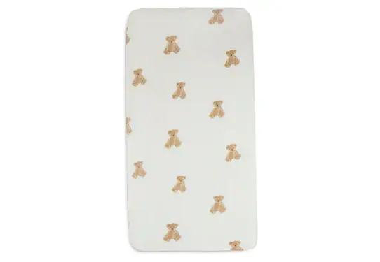 Dit lieve teddybeer printje is onweerstaanbaar! Het schattige beertje houdt jouw baby gezelschap. Deze print zien we terugkomen op allerlei producten, zoals een slaapzakje, slabbetjes en zelfs een boxkleed. Je matcht de Teddy Bear collectie met de overige items uit deze collectie of met de aaibare Bouclé collectie. Wist je dat we dit schattige beertje ook terug zien is op ons speelgoed? Super leuk om cadeau te geven óf te krijgen!