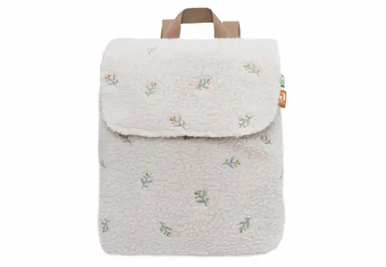 Hoe onwijs lief is dit Lovely rugzakje? Deze mooie neutrale teddy tas heeft mooie takjes met lieflijke blauwe details. De biscuit kleur in de hengsels in combinatie met de teddy stof maakt het tasje helemaal af en met het koordje kun je de tas veilig aflsuiten. Hier zie je jouw mini toch gewoon mee shinen?