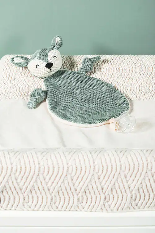 Het cuddledoekje heeft een lief hertengezichtje en is van zacht materiaal waar je kindje heerlijk mee kan kroelen en knuffelen. De voorkant en achterkant van het doekje zijn van verschillend van stof en structuur. Dat is interessant studiemateriaal voor jouw baby. Je knoopt het doekje dankzij het lusje gemakkelijk vast aan het speentje.