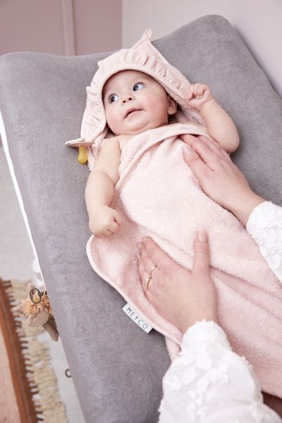 Meyco badcape badstof 80x80cm ruffle – Soft Pink (optie met naam)