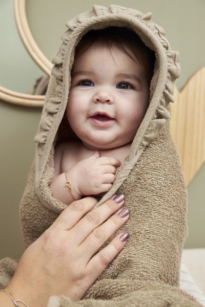 Meyco badcape badstof 80x80cm ruffle – Taupe (optie met naam)