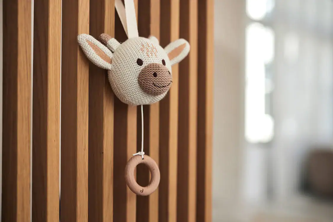 Dit is het diertje dat zal zingen voor jouw kleintje! Deze leuke muziekhanger speelt het liedje ”sleep, dear child, sleep” als je aan het touwtje trekt. Dit kan rustgevend werken voor jouw baby. Je matcht deze muziekhanger goed met bijvoorbeeld het Animals speendoekje. Tip: speel het muziekje regelmatig vlak bij jouw zwangere buik en je zult zien dat het vertrouwd en rustgevend is voor jouw kleintje als het net geboren is. Deze muziekhanger is daarom een leuk zwangerschapscadeau. Ook als kraamcadeautje zal het in de smaak vallen.