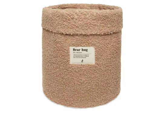 Praktisch mandje van zachte aaibare Bouclé stof om spulletjes in op te bergen. Het mandje is 14 cm hoog en heeft een diameter van 18 cm. Op de voorkant van het mandje vind je het leuke ‘bear-hug’ logo. Dit mandje is superhandig voor op de commode voor de kleine verzorgingsspulletjes zoals een manicuresetje, borsteltje en een thermometer. En tegelijkertijd een leuke accessoire om de babykamer net dat extra sfeer mee te geven. Met dit opbergmandje houdt je commode lades geordend. Een mandje voor sokjes, voor verzorgingsproducten en voor slofjes. Daarnaast staat dit ook nog een super leuk op de commode! Ook handig voor in de woonkamer voor klein speelgoed. Je combineert dit commodemandje ook heel leuk met de grote opbergmand Bouclé.