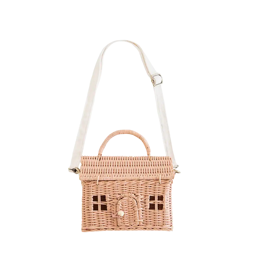 A little house-shaped bag for kiddos on the go! Smaller and more compact than the Casa Clutch, the Casa Bag comes complete with a removable and adjustable fabric strap making it the toy accessory for every adventure. Handmade from 100% natural Rattan, the Casa Bag opens at the roof and door for easy storage of all their tiny trinkets.