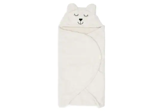 Wikkeldeken met gegarandeerd mega hoge cutenessfactor. De stof is van fluffly vachtlook aan de buitenkant en heerlijk comfortabel zacht aan de binnenkant. Wikkel je baby in deze omslagdoek en sluit de deken met de praktische klittenbandstroken. Zet het mutsje erbij op en zie daar, die schattige oortjes en dito berengezichtje op het mutsje. Echt te lief! Deze omslagdoek is te gebruiken vanaf de geboorte. En ook heel handig te gebruiken in baby’s eerste autostoel. De gordels van de autostoel kun je door de openingen in de deken halen waardoor je baby lekker in de omslagdoek kan blijven zitten. Het is een universele wikkeldeken voor de Maxi Cosi en elk ander merk categorie 0 autostoeltje met drie of vijfpuntsgordel. Verkrijgbaar in diverse kleuren.